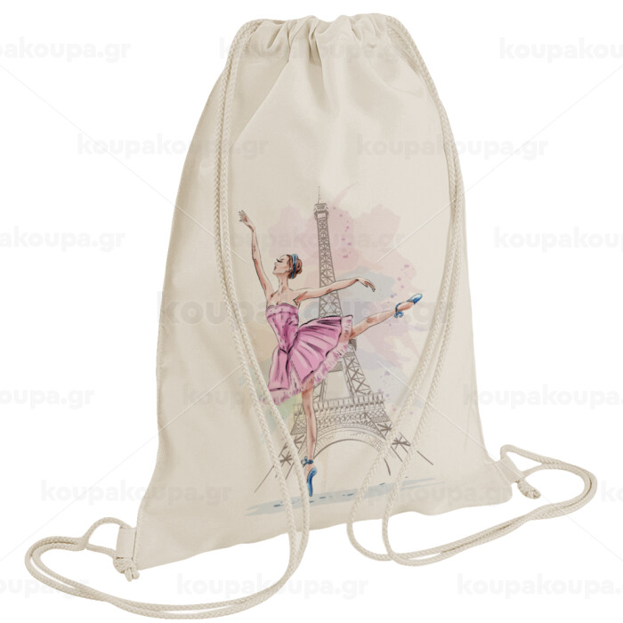 Ballerina in Paris, Τσάντα πλάτης πουγκί GYMBAG natural (28x40cm)