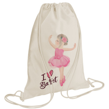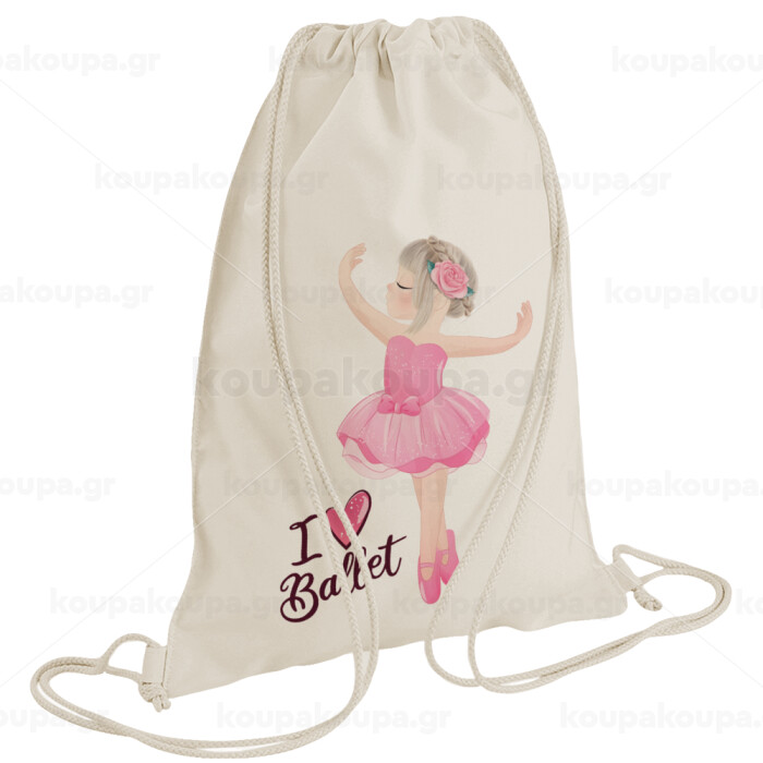 I Love Ballet, Τσάντα πλάτης πουγκί GYMBAG natural (28x40cm)