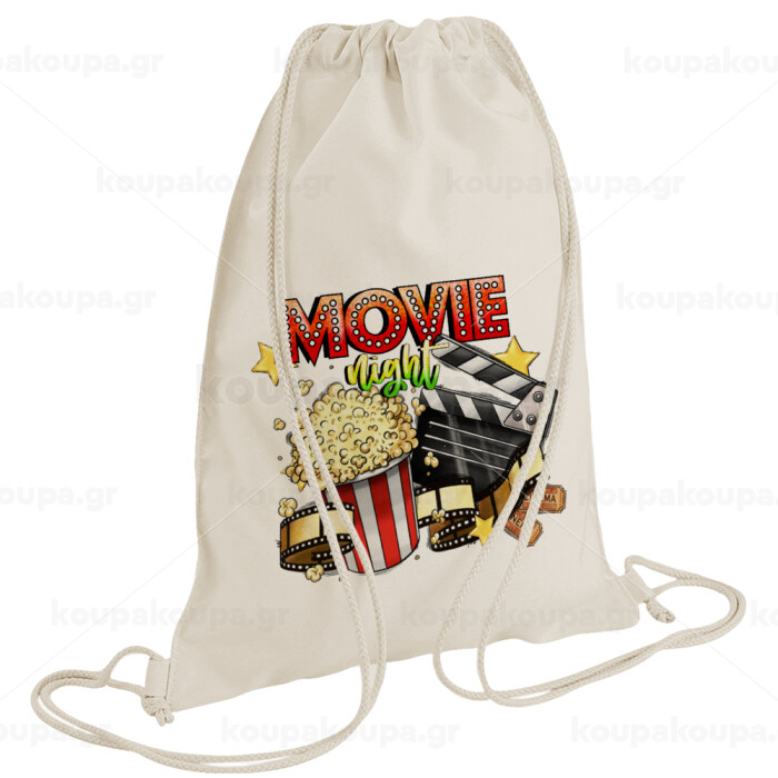 Movie night, Τσάντα πλάτης πουγκί GYMBAG natural (28x40cm)