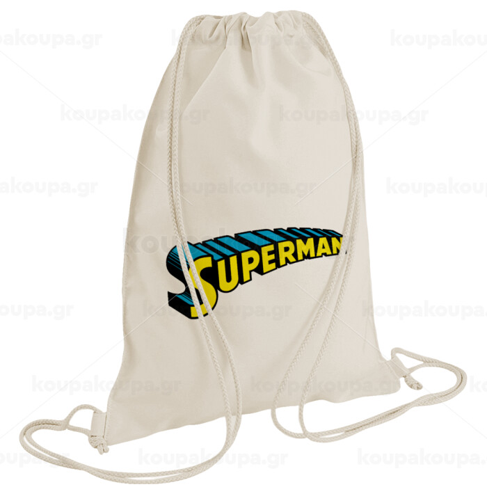 Superman vintage, Τσάντα πλάτης πουγκί GYMBAG natural (28x40cm)