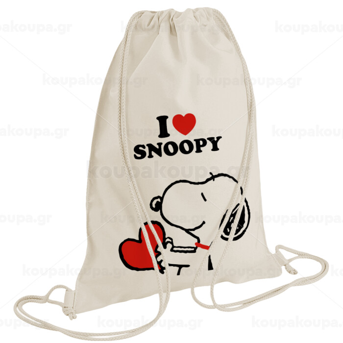 I LOVE SNOOPY, Τσάντα πλάτης πουγκί GYMBAG natural (28x40cm)