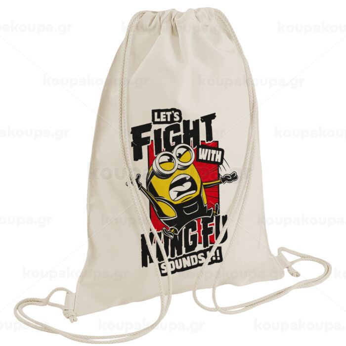 Minions Let's fight with kung fu sounds, Τσάντα πλάτης πουγκί GYMBAG natural (28x40cm)