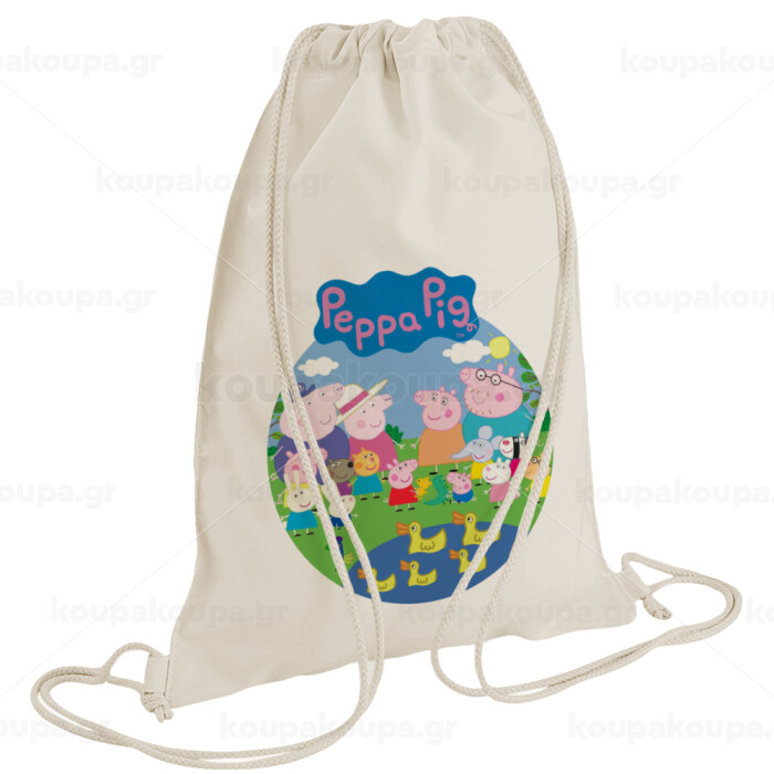 Peppa pig Family, Τσάντα πλάτης πουγκί GYMBAG natural (28x40cm)