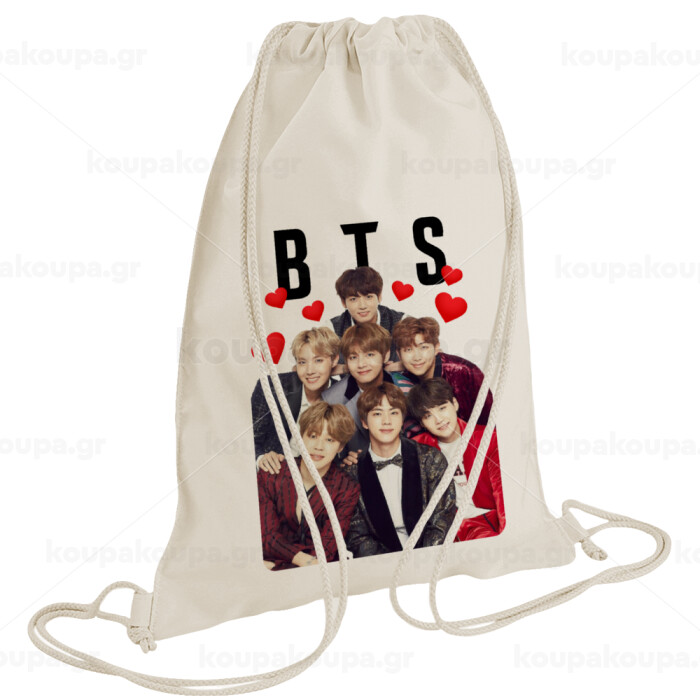 BTS hearts, Τσάντα πλάτης πουγκί GYMBAG natural (28x40cm)