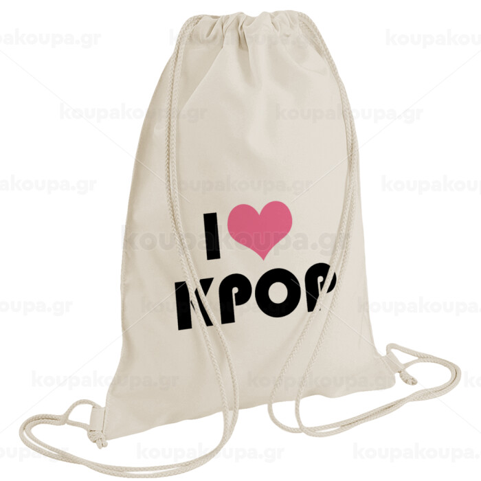 I Love KPOP, Τσάντα πλάτης πουγκί GYMBAG natural (28x40cm)