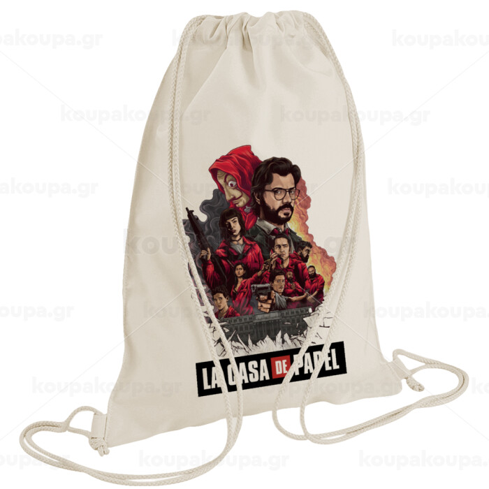 La casa de papel drawing cover, Τσάντα πλάτης πουγκί GYMBAG natural (28x40cm)