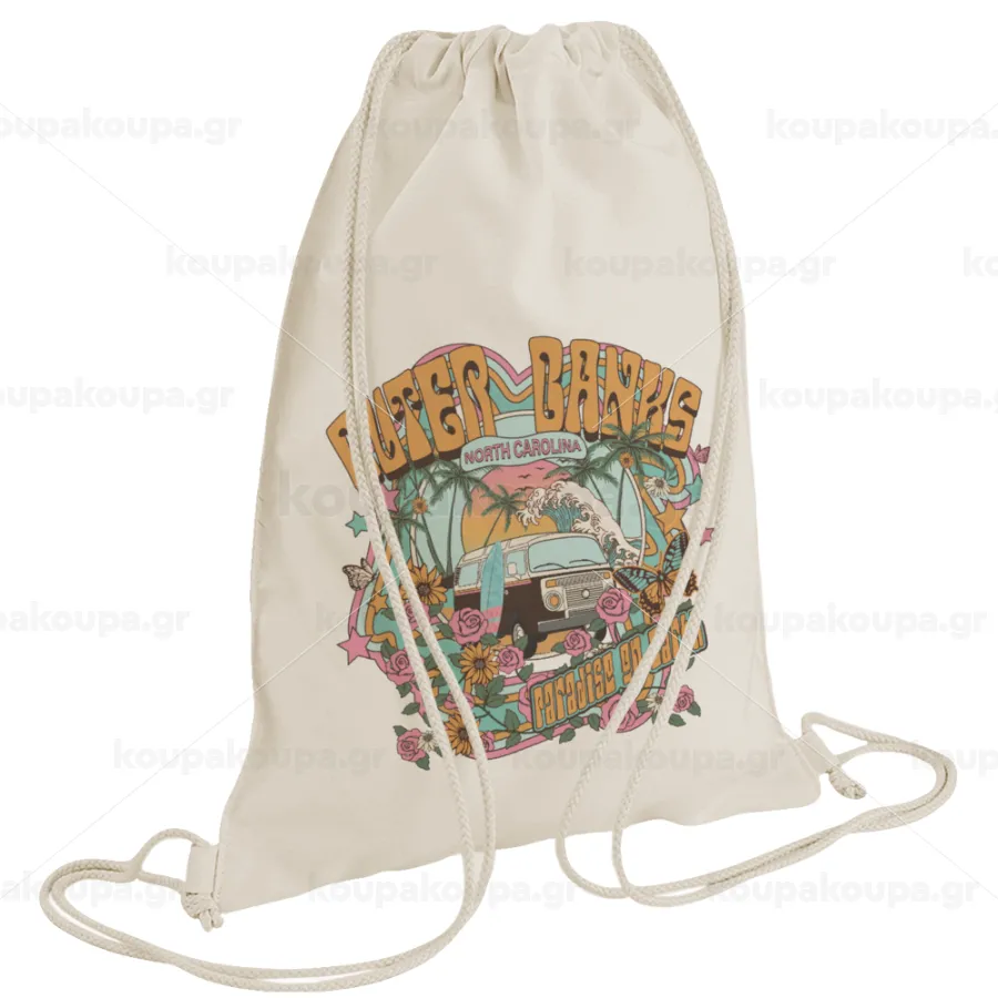 Outerbanks paradise on earth, Τσάντα πλάτης πουγκί GYMBAG natural (28x40cm)