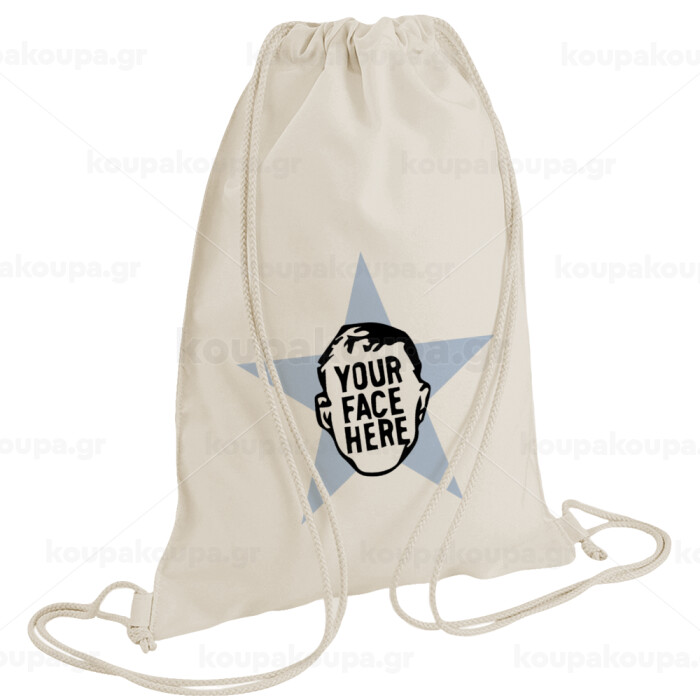 Αθλητική τσάντα πλάτης με διαστάσεις 28x40cm. Τα κορδόνια σύσφιξης μπορούν να τραβηχτούν για να κλείσουν την τσάντα και στη συνέχεια να χρησιμοποιηθούν ως ιμάντες ώμου για τη μεταφορά της τσάντας.