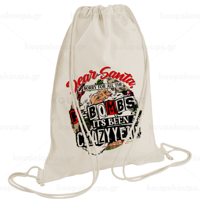 Dear Santa, sorry for all the F-bombs, Τσάντα πλάτης πουγκί GYMBAG natural (28x40cm)
