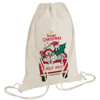 Merry Christmas cats in car, Τσάντα πλάτης πουγκί GYMBAG natural (28x40cm)