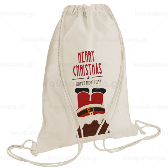 Merry christmas chimney, Τσάντα πλάτης πουγκί GYMBAG natural (28x40cm)