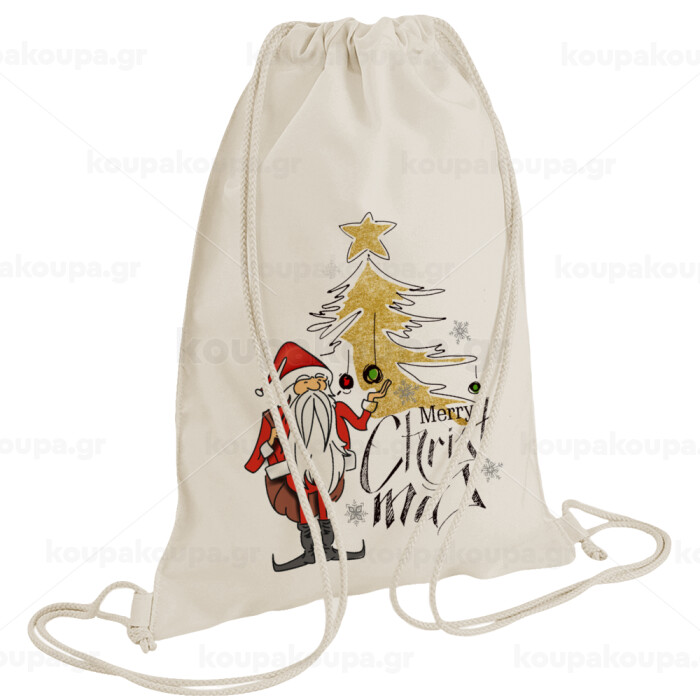 Santa Claus gold, Τσάντα πλάτης πουγκί GYMBAG natural (28x40cm)