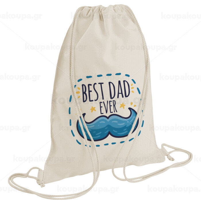 Best dad ever μπλε μουστάκι, Τσάντα πλάτης πουγκί GYMBAG natural (28x40cm)