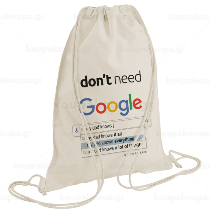 I don't need Google my dad..., Τσάντα πλάτης πουγκί GYMBAG natural (28x40cm)