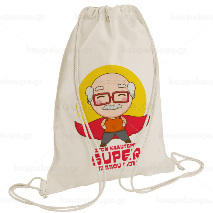 Στον καλύτερο Super παππού μου!, Τσάντα πλάτης πουγκί GYMBAG natural (28x40cm)