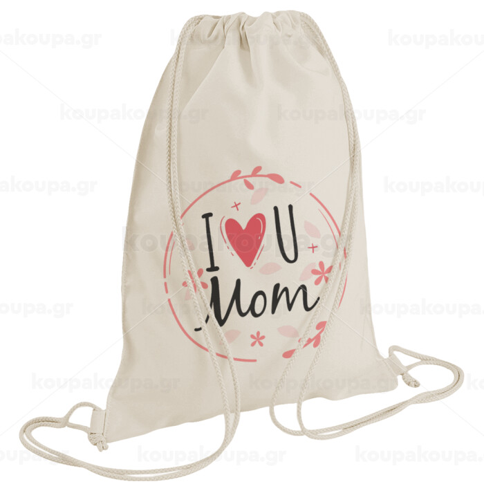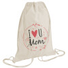 I Love you Mom pink, Τσάντα πλάτης πουγκί GYMBAG natural (28x40cm)