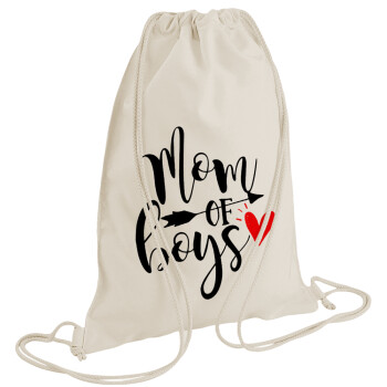 Mom of boys, Τσάντα πλάτης πουγκί GYMBAG natural (28x40cm)
