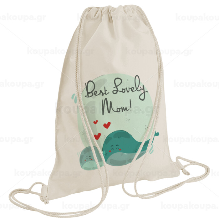 Mothers Day, whales, Τσάντα πλάτης πουγκί GYMBAG natural (28x40cm)