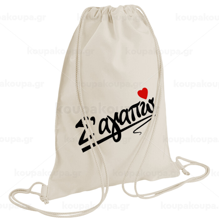 Σ΄ αγαπώ!!!, Τσάντα πλάτης πουγκί GYMBAG natural (28x40cm)