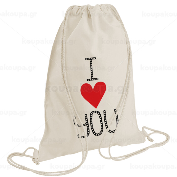 I Love You small dots, Τσάντα πλάτης πουγκί GYMBAG natural (28x40cm)
