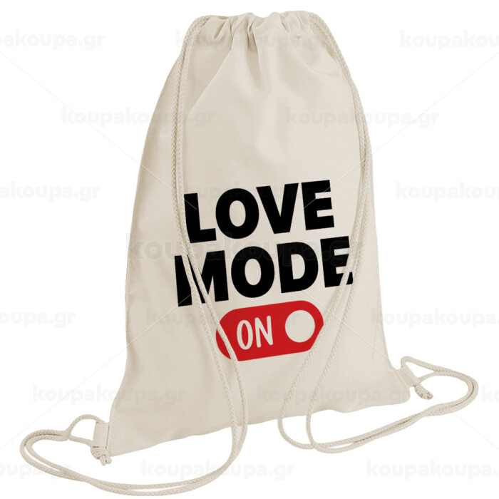 LOVE MODE ON, Τσάντα πλάτης πουγκί GYMBAG natural (28x40cm)