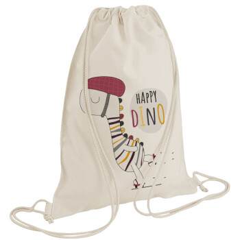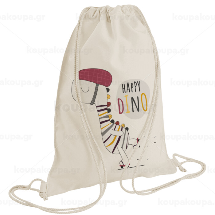 Happy Dino, Τσάντα πλάτης πουγκί GYMBAG natural (28x40cm)