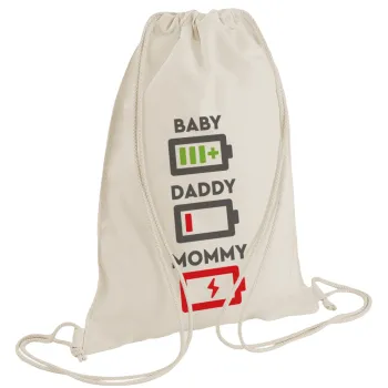 BABY, MOMMY, DADDY Low battery, Τσάντα πλάτης πουγκί GYMBAG natural (28x40cm)