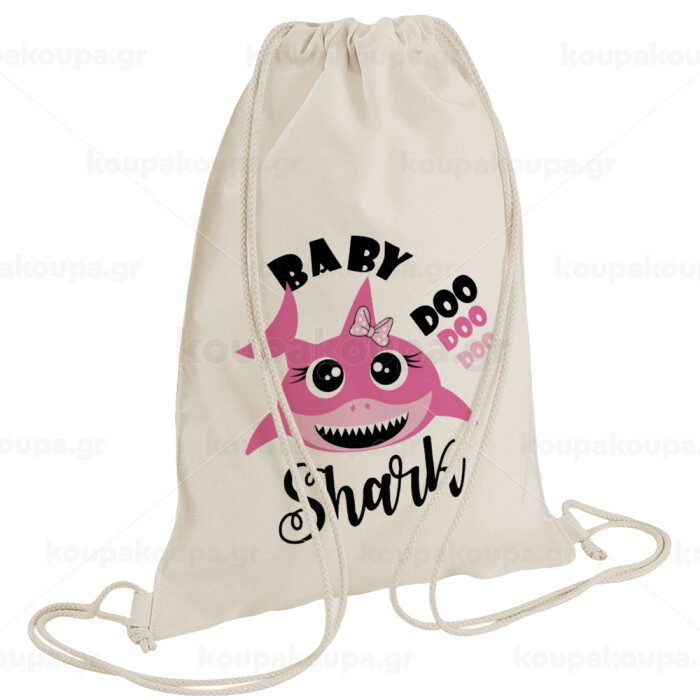 Baby Shark (girl), Τσάντα πλάτης πουγκί GYMBAG natural (28x40cm)