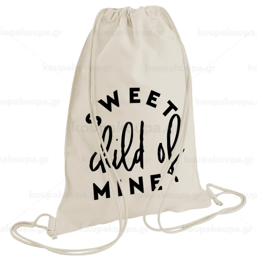 Sweet child of mine!, Τσάντα πλάτης πουγκί GYMBAG natural (28x40cm)