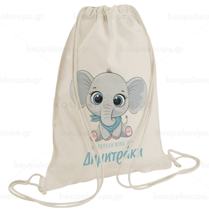 Η νονά μου, ελεφαντάκι γαλάζιο, Τσάντα πλάτης πουγκί GYMBAG natural (28x40cm)
