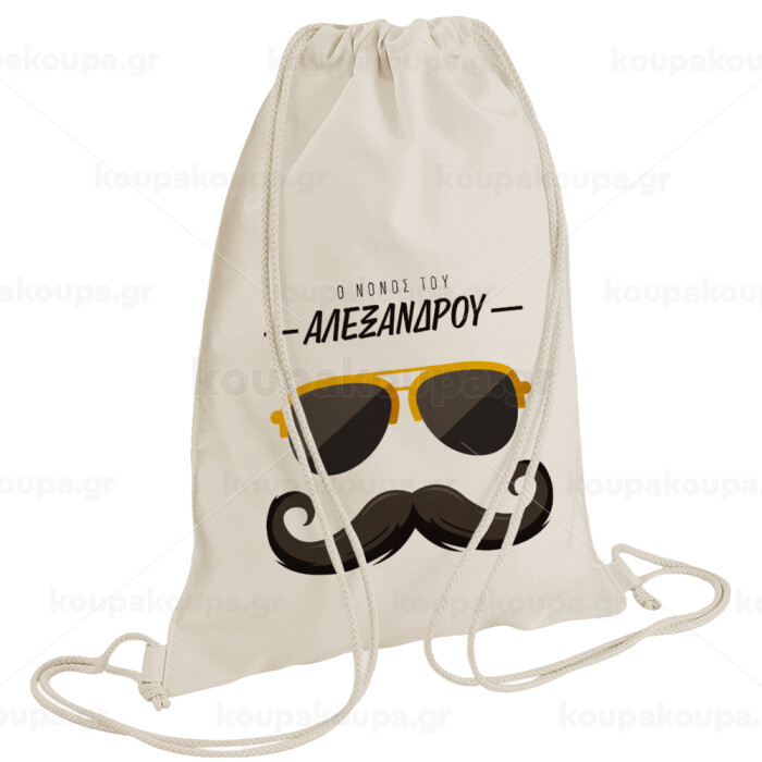 Ο νονός μου, μουστάκι με γυαλιά, Τσάντα πλάτης πουγκί GYMBAG natural (28x40cm)