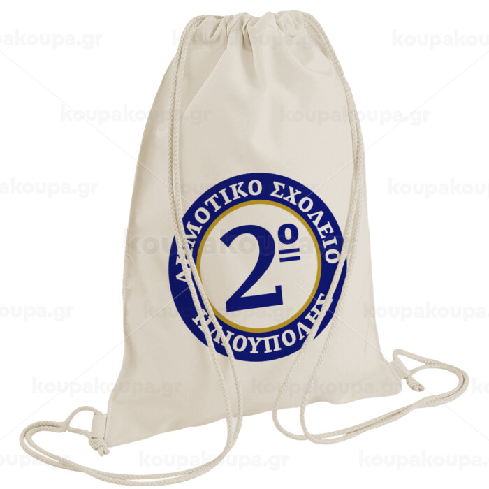Έμβλημα Σχολικό μπλε/χρυσό, Τσάντα πλάτης πουγκί GYMBAG natural (28x40cm)