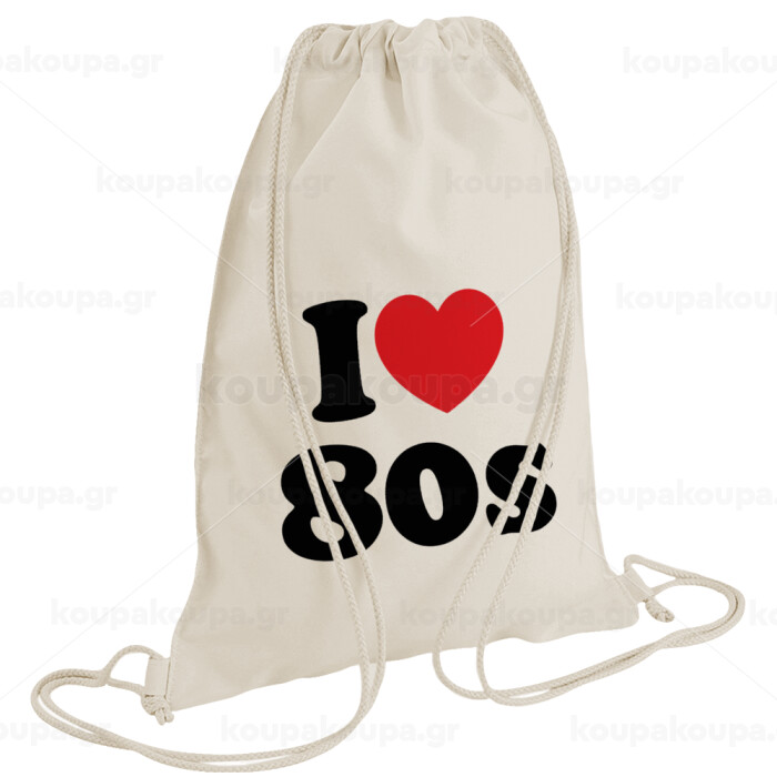 I Love 80s, Τσάντα πλάτης πουγκί GYMBAG natural (28x40cm)