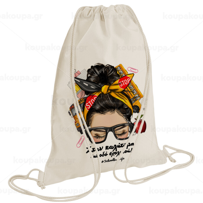 Στην καλύτερη συνοδό σχολικού!, Τσάντα πλάτης πουγκί GYMBAG natural (28x40cm)