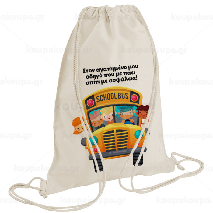 Στον αγαπημένο μου οδηγό που με πάει σπίτι με ασφάλεια!, Τσάντα πλάτης πουγκί GYMBAG natural (28x40cm)