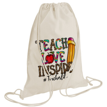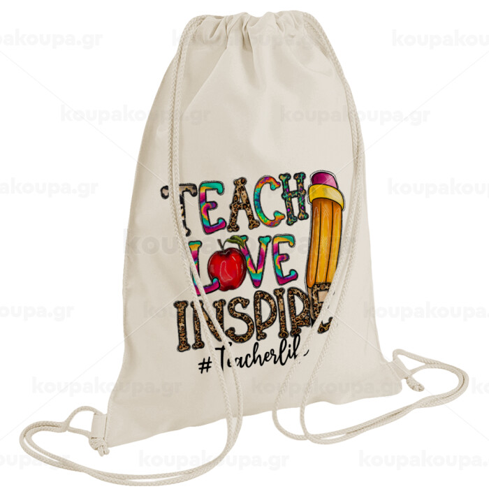 Teach, Love, Inspire, Τσάντα πλάτης πουγκί GYMBAG natural (28x40cm)