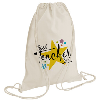Teacher super star!!!, Τσάντα πλάτης πουγκί GYMBAG natural (28x40cm)