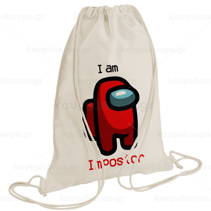 Among US i am impostor, Τσάντα πλάτης πουγκί GYMBAG natural (28x40cm)