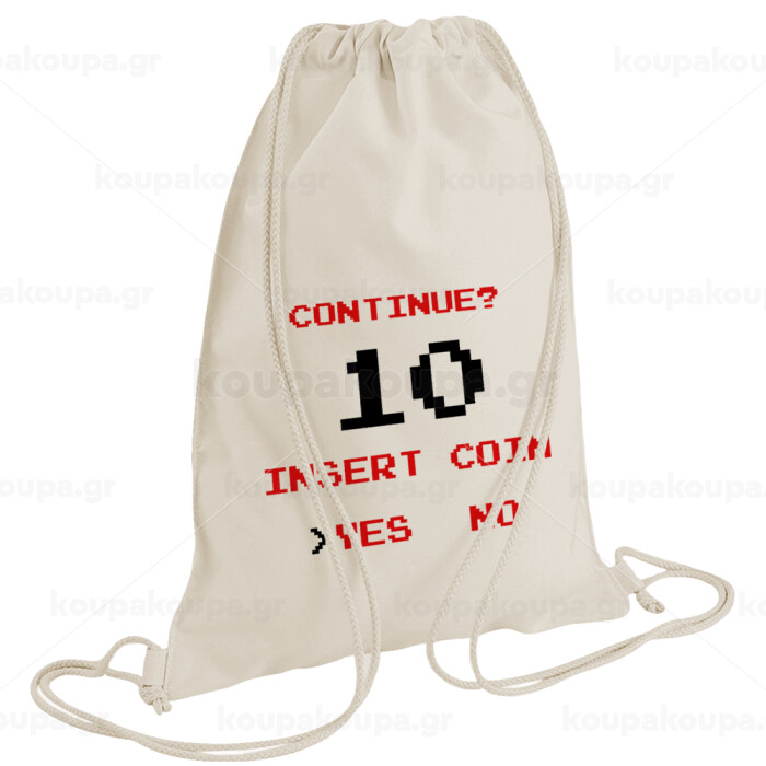 Continue? YES - NO, Τσάντα πλάτης πουγκί GYMBAG natural (28x40cm)