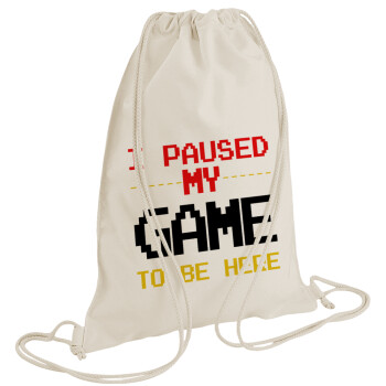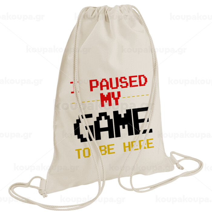 I paused my game to be here, Τσάντα πλάτης πουγκί GYMBAG natural (28x40cm)