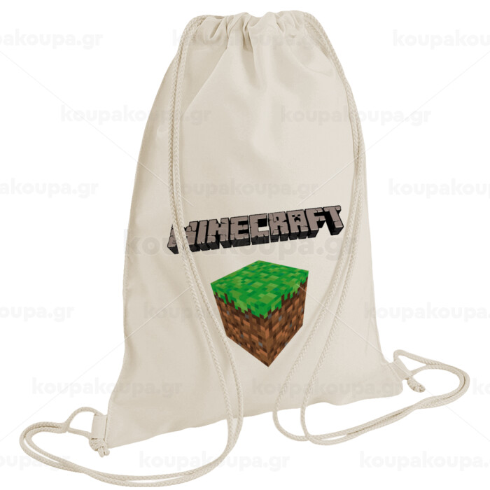Minecraft dirt, Τσάντα πλάτης πουγκί GYMBAG natural (28x40cm)