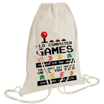 OLD computer games couldn't be won just like real life!, Τσάντα πλάτης πουγκί GYMBAG natural (28x40cm)