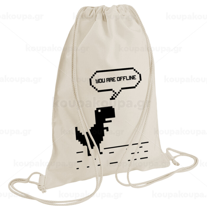You are offline dinosaur, Τσάντα πλάτης πουγκί GYMBAG natural (28x40cm)