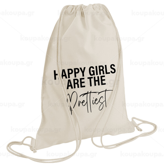 Happy girls are the prettiest, Τσάντα πλάτης πουγκί GYMBAG natural (28x40cm)