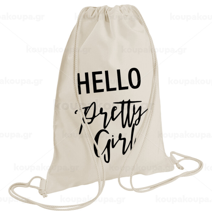 Hello pretty girl, Τσάντα πλάτης πουγκί GYMBAG natural (28x40cm)