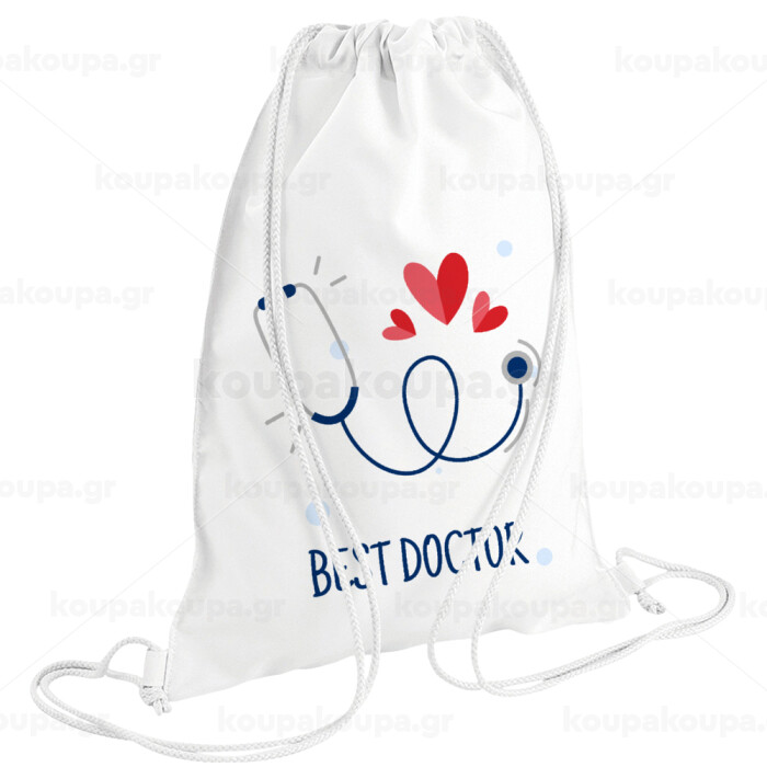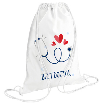 Best Doctor, Τσάντα πλάτης πουγκί GYMBAG λευκή (28x40cm)