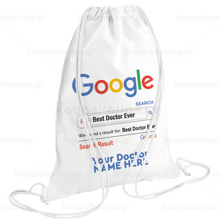 Searching for Best Doctor Ever..., Τσάντα πλάτης πουγκί GYMBAG λευκή (28x40cm)