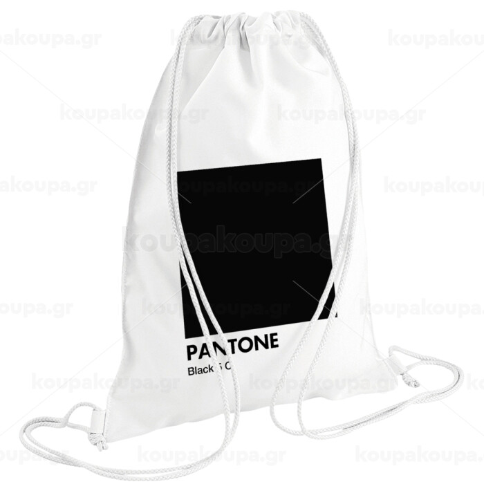 Pantone Black, Τσάντα πλάτης πουγκί GYMBAG λευκή (28x40cm)