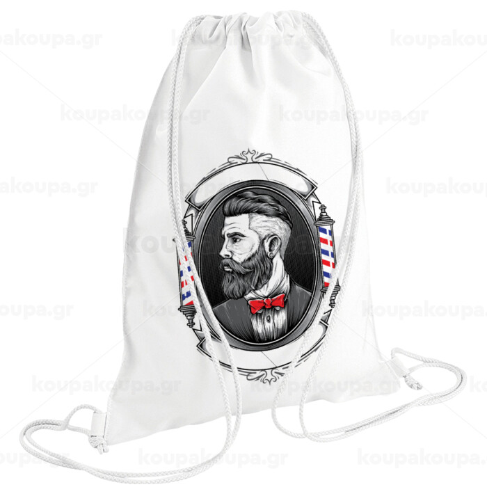 Barber shop, Τσάντα πλάτης πουγκί GYMBAG λευκή (28x40cm)