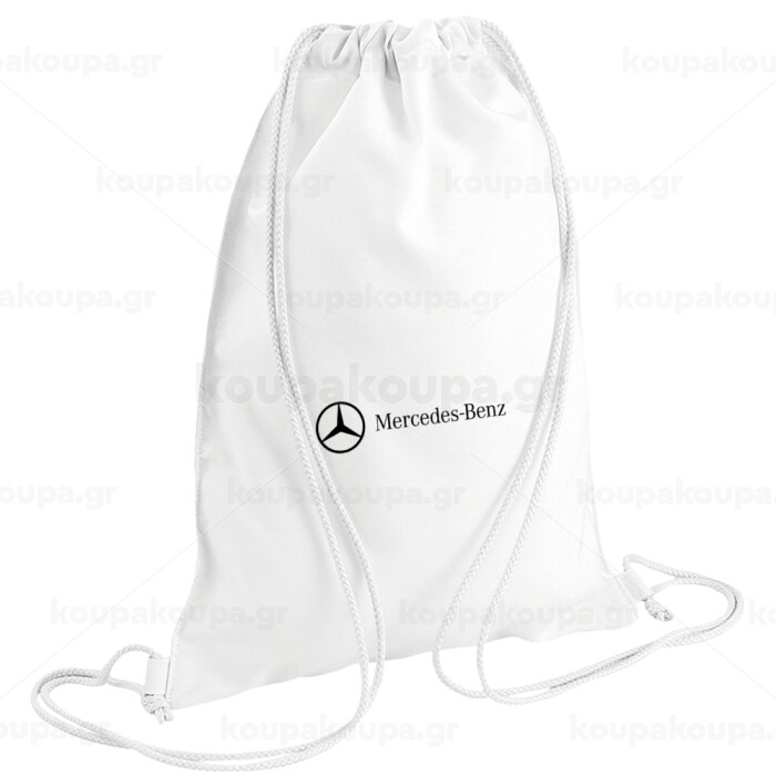 Mercedes small logo, Τσάντα πλάτης πουγκί GYMBAG λευκή (28x40cm)